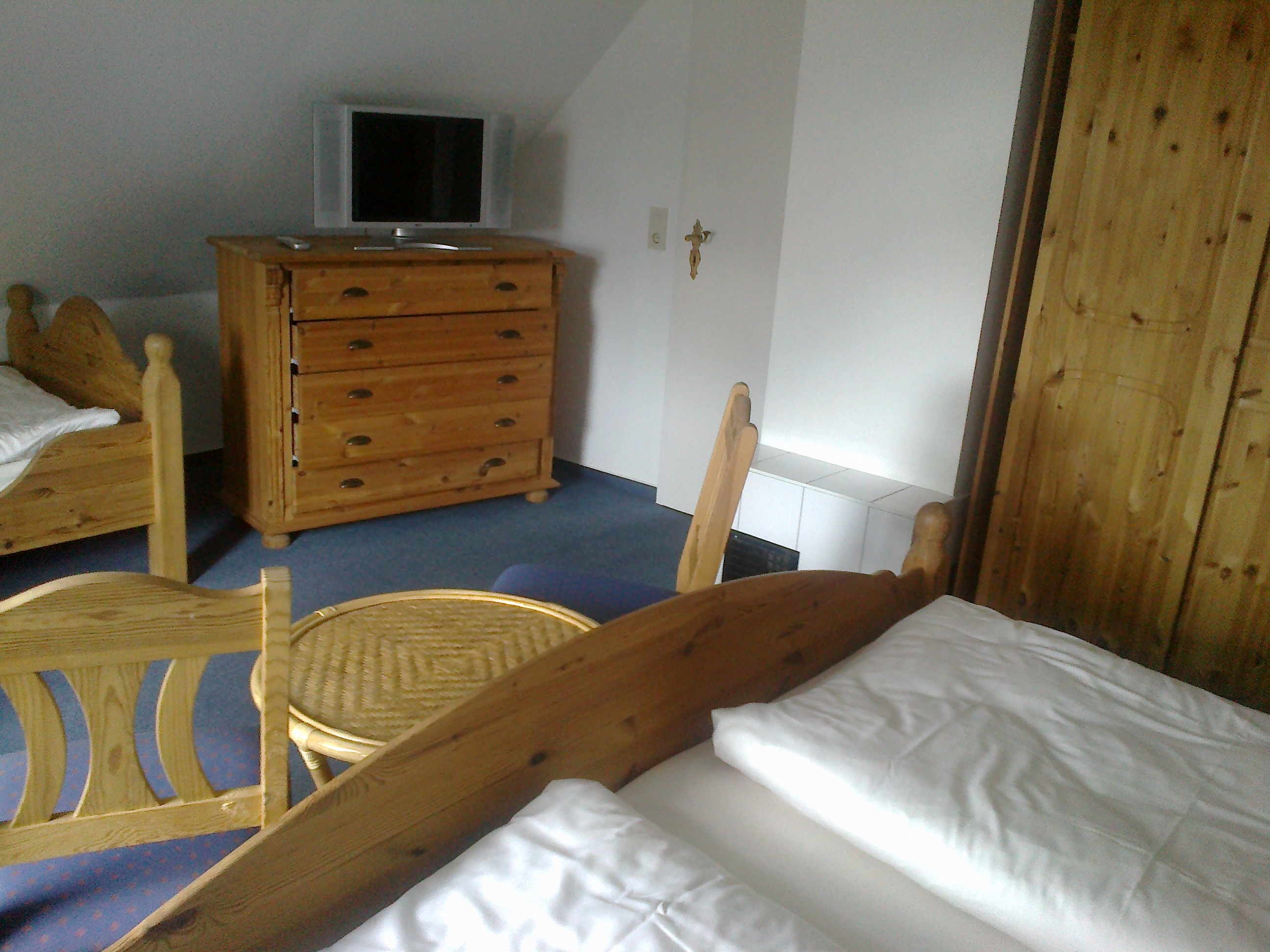 | Schlafzimmer mit Doppel- u. Einzelbett, Sitzgruppe u. Fernseher Dachgeschoss | Schlafzimmer mit Doppel- u. Einzelbett, Sitzgruppe u. Fernseher Dachgeschoss | ||||||||